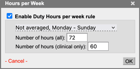 "Not Averaged" Option for Duty Hours- The Duty Hours Per Week rule can now count the hours in each week or over a rolling 7-day period, in addition to averaging over the block.